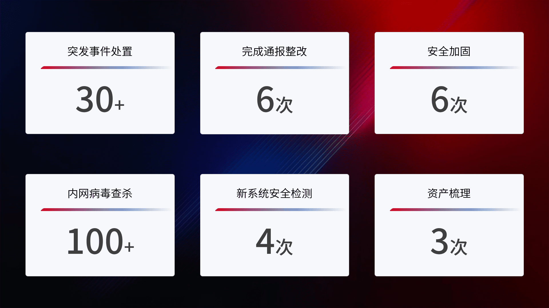网络安全加固与风险管理:通过技术加固手段,,,,如加强区域隔离,,,,缩减攻击内网横向移动的范围;优化现有网络安全管理制度,,,降低网络威胁暴露面,,减少被黑客攻击的可能性。。